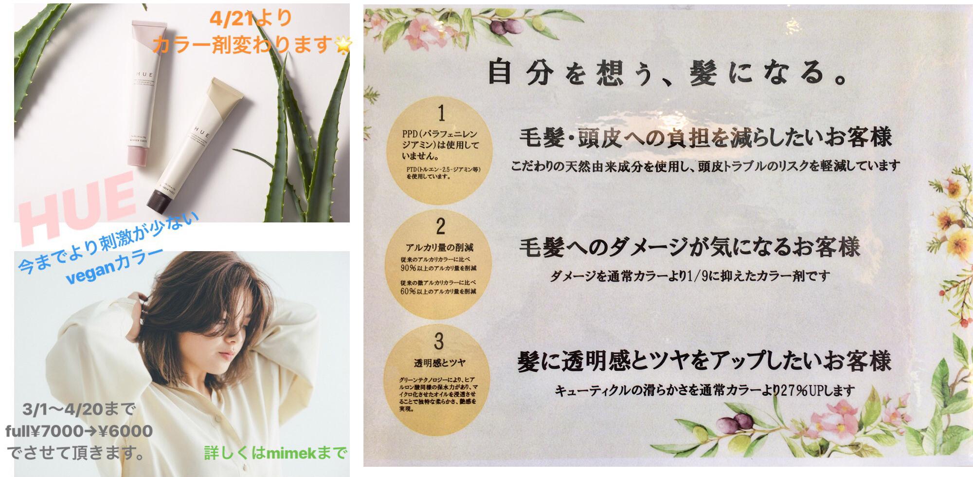 今までより刺激が少ないカラー剤に変わります。毛髪・頭皮への負担が気になるお客様は是非お試しください!